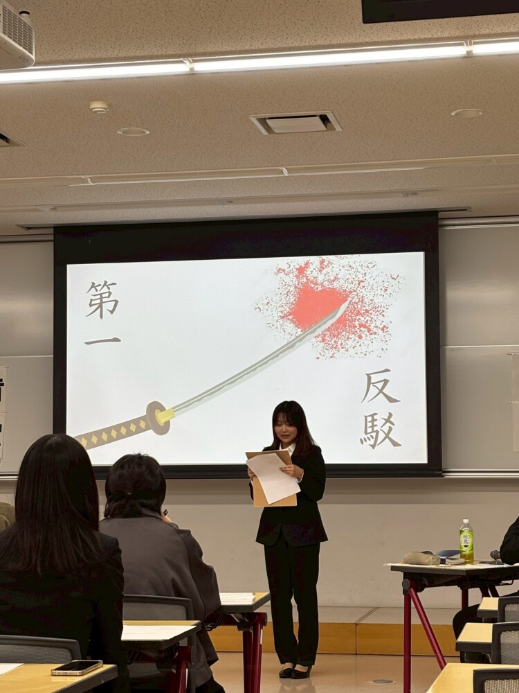 研究報告会お疲れ様でした。今回私は初めて先輩方とディベートで戦いましたが、改めて先輩方との技量の差を感じ、冬の対外に向けてどう進めばいいのか方向性が決まるディベートとなりました。また、OB/OGの方々には暖かいコメントやアドバイスをいただき得るものが沢山あり、非常に良い交流ができました。